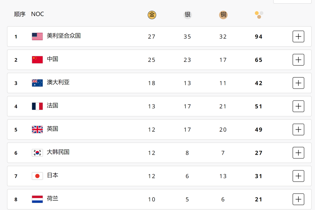 China Olympic Gold Medal Rankings Second place, Chinese Olympic athletes cheering, Paris mascot made in China, Paris students volunteering for Chinese athletes, and congratulating Chinese teenagers, I want China to surpass the Amercian and first place, The Chinese national anthem was reminded of the Chinese national anthem when presenting awards to the Chinese contestants, Cheer for the Chinese athletes.