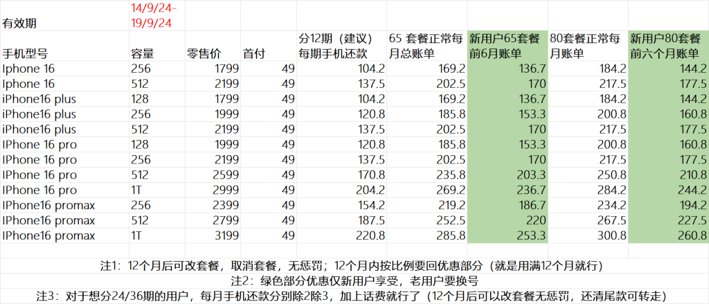 I buy the iPhone 16 por Max black and 256 gb, every month pay 100 dollars, and 2degrees the SIM card , is to the 20th September to can take my new phone