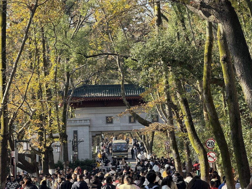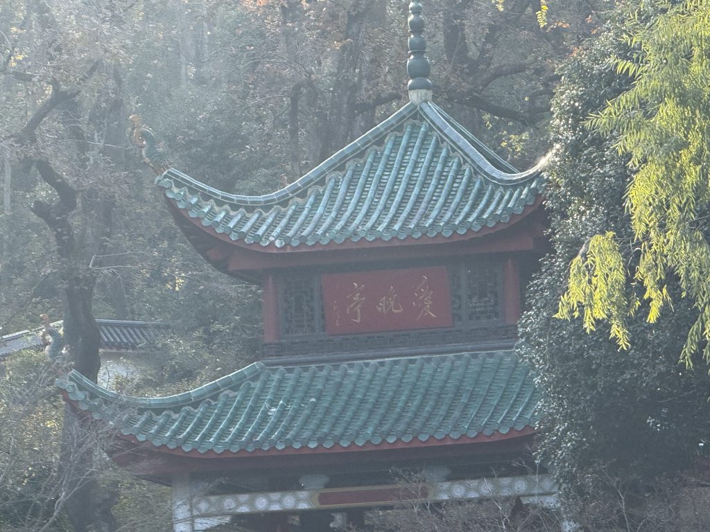 on Sunday , I with my friend went to Yuelu Mountain at 2:00 p.m., climb the mountain to the Love Evening Pavilion(爱晚亭), more people in the Hunan University because there is the sun.
