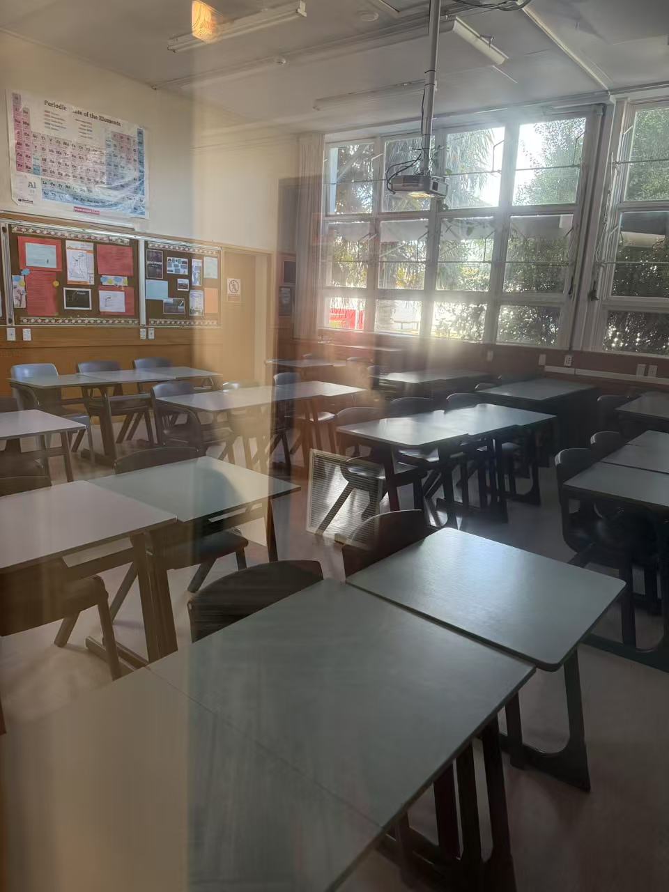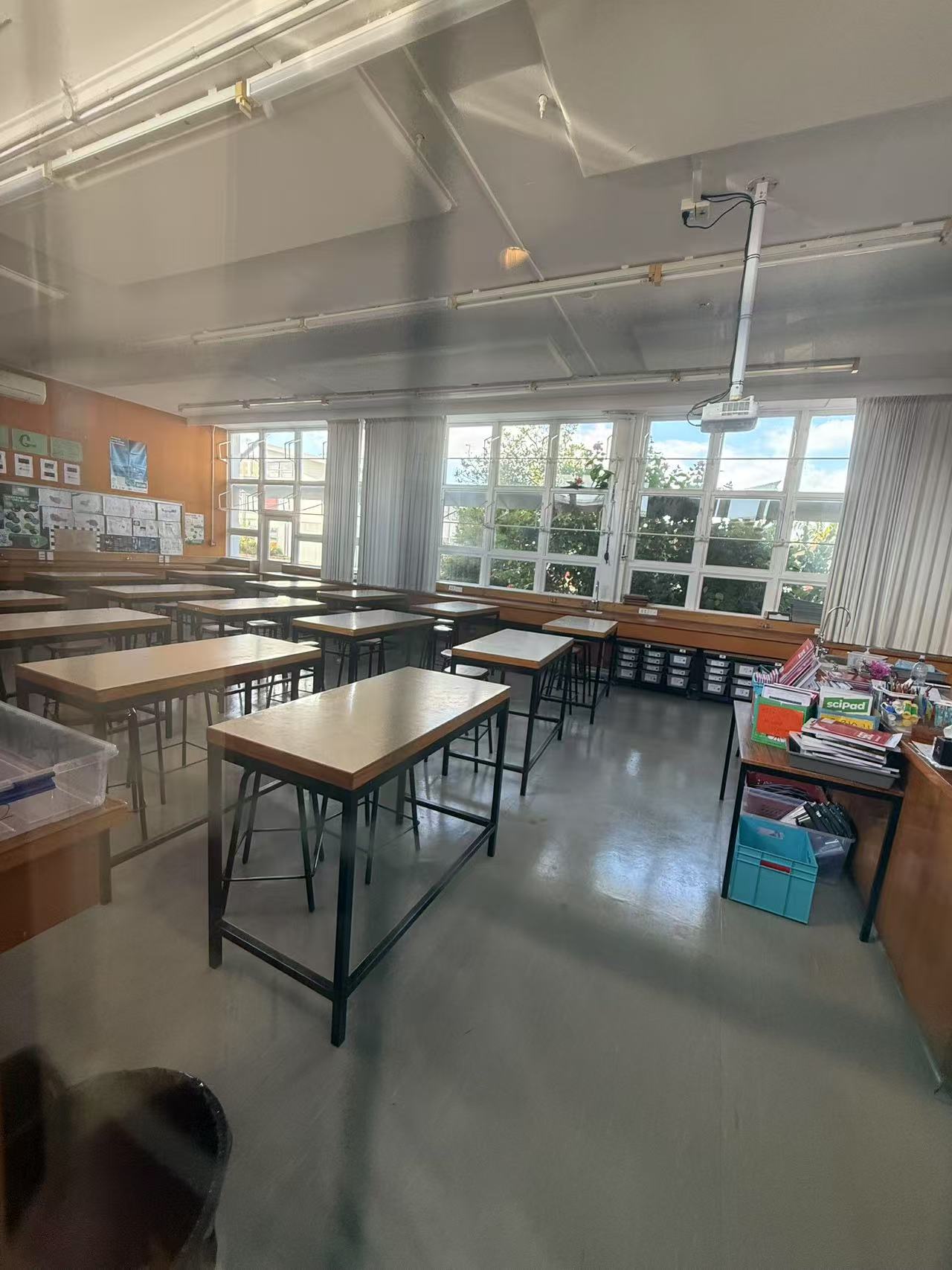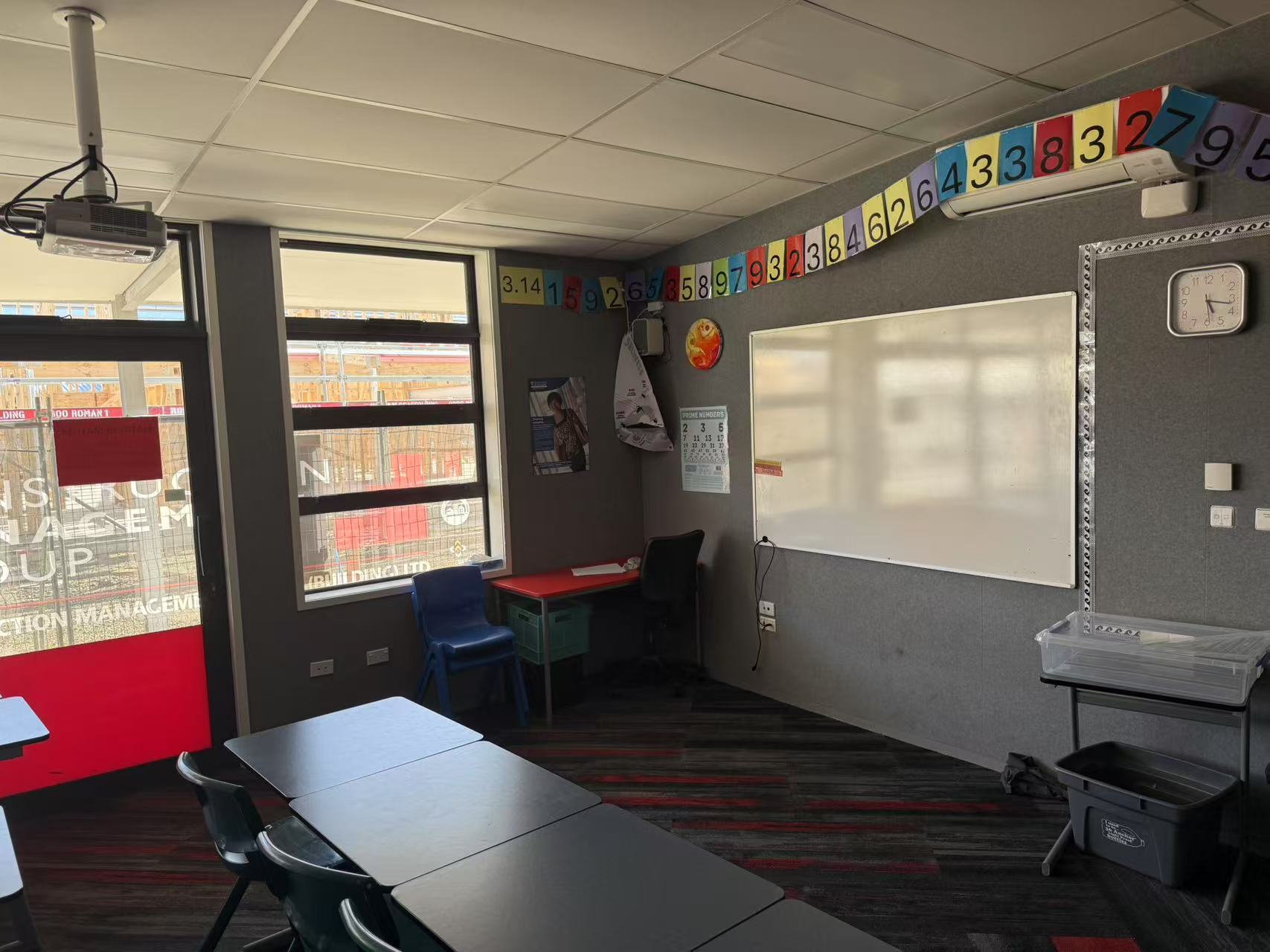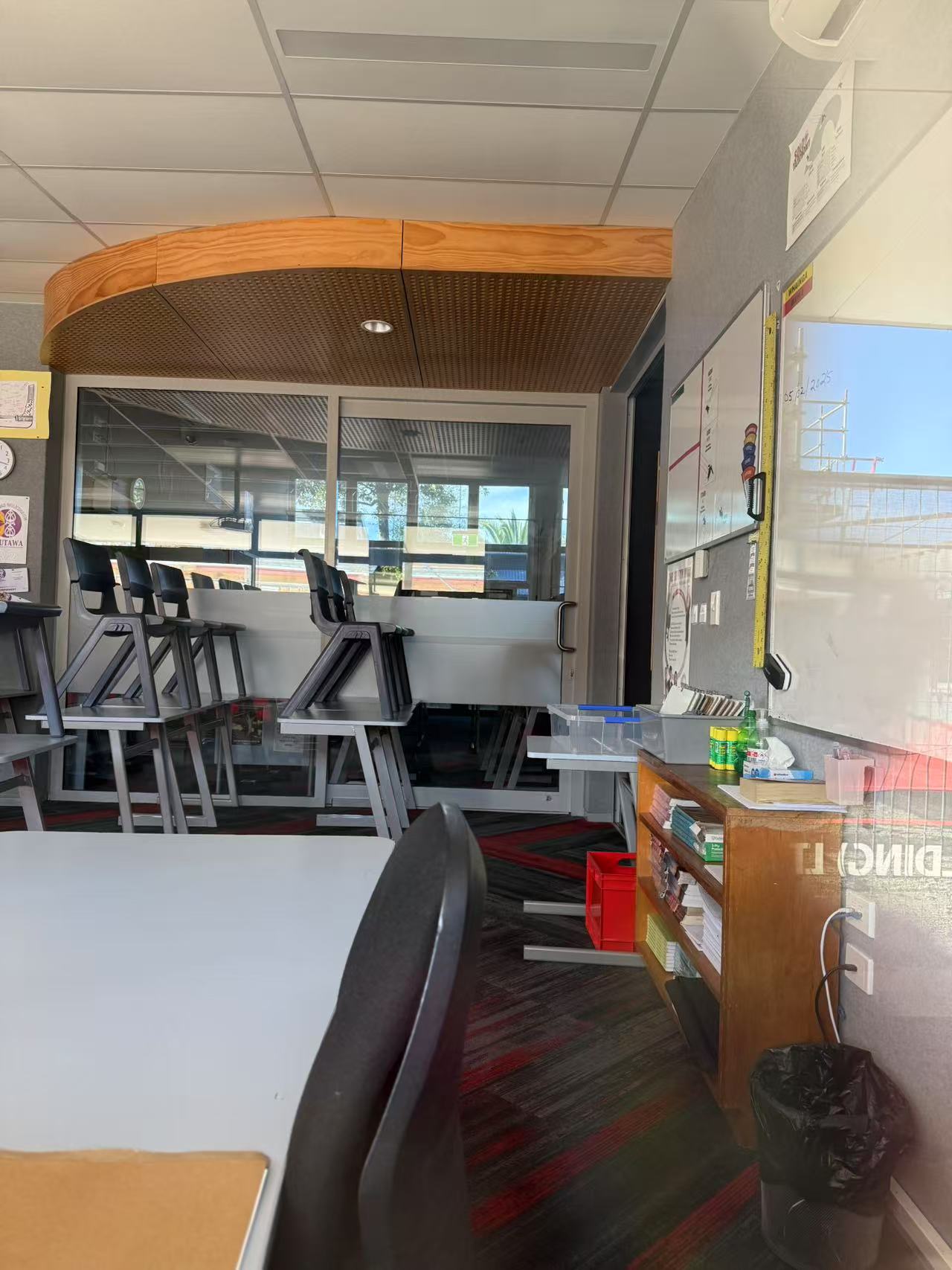 This is our school’s math classroom, science classroom and gymnasium. There is a large grass field behind the school for playing football. Our school ends at 3:10.