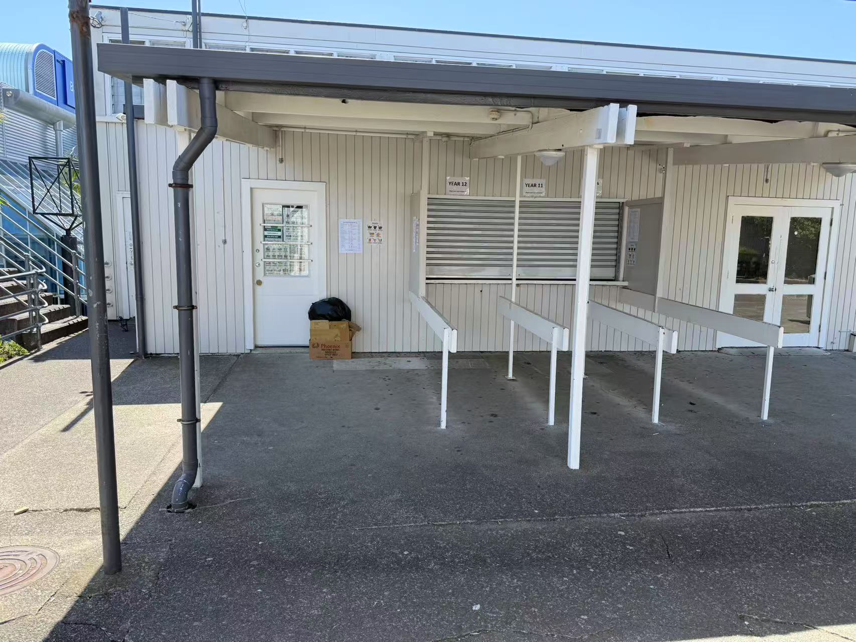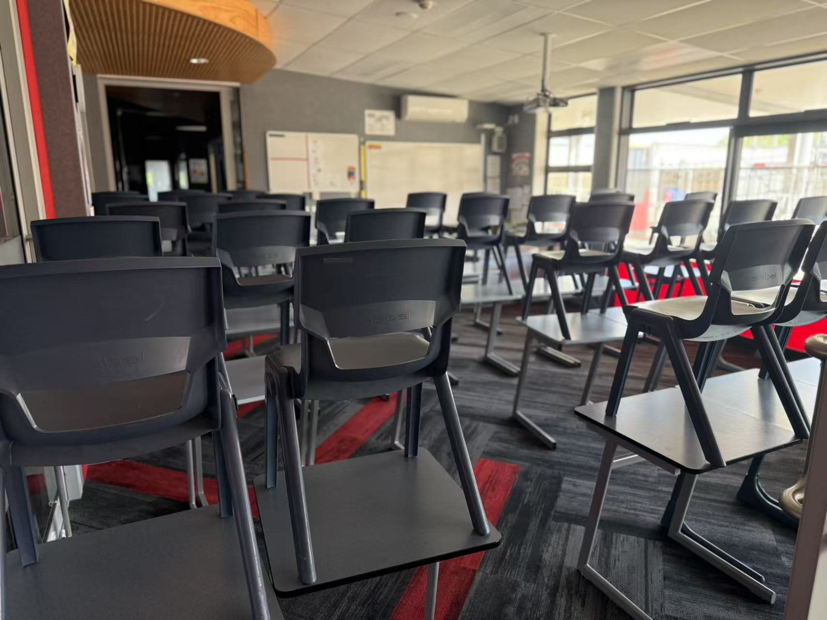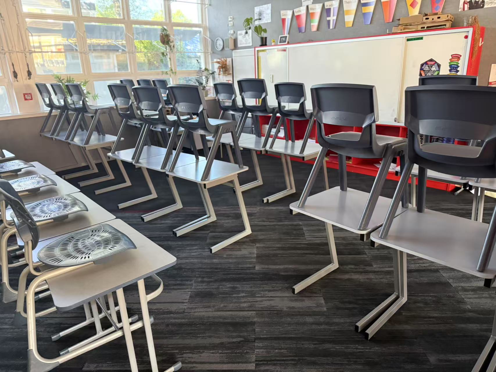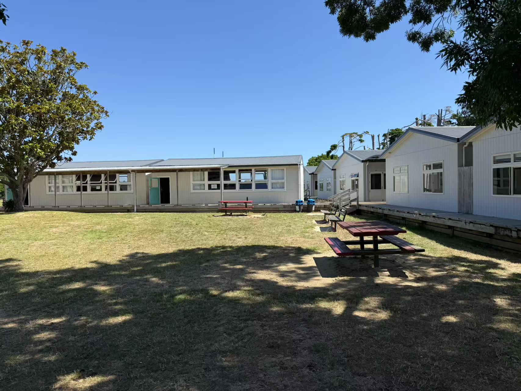 This is our school’s math classroom, science classroom and gymnasium. There is a large grass field behind the school for playing football. Our school ends at 3:10.