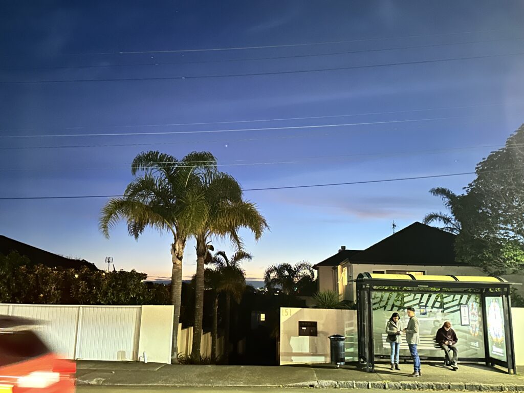 New Zealand The sunset glow of the sun, and stay bus stop see the sunset view that so beautiful